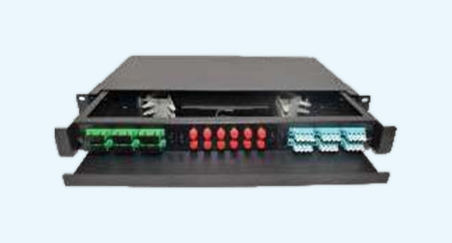 - Slide-out tray holds up to 12 adapter panels for 12, 24, or up to 288 duplex LC port configurations
